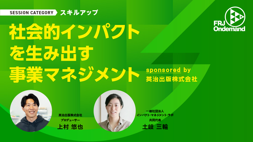 一般社団法人インパクト・マネジメント・ラボ共同代表の土岐三輪が、「社会的インパクトを生み出す事業マネジメント」というタイトルの動画に登壇します。
